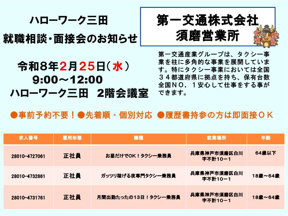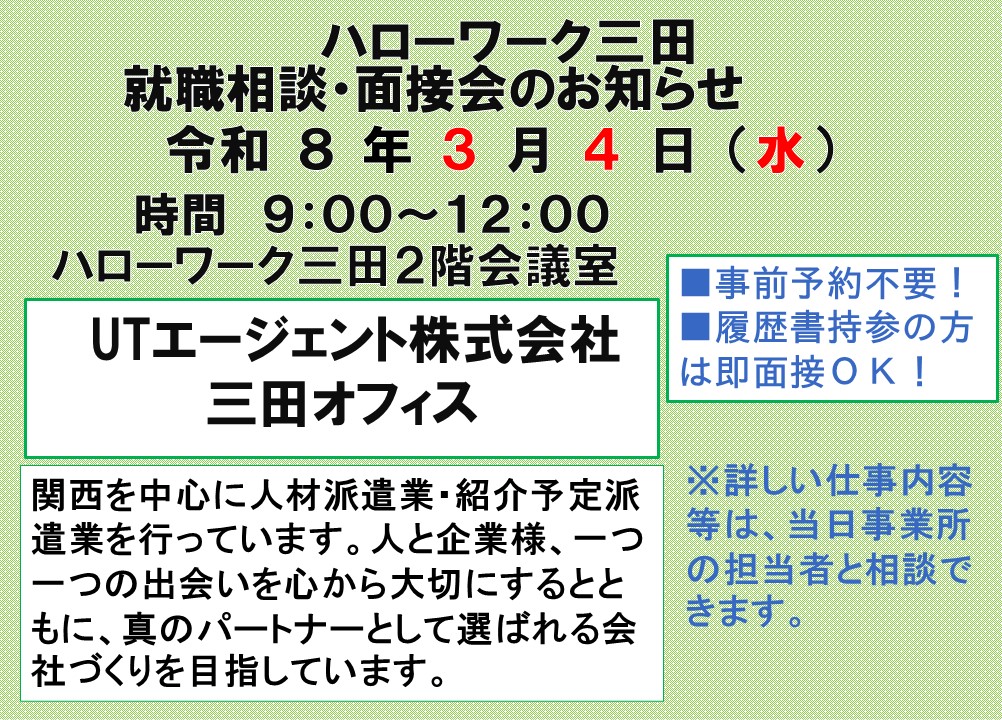 - ハローワーク三田からのお知らせ >