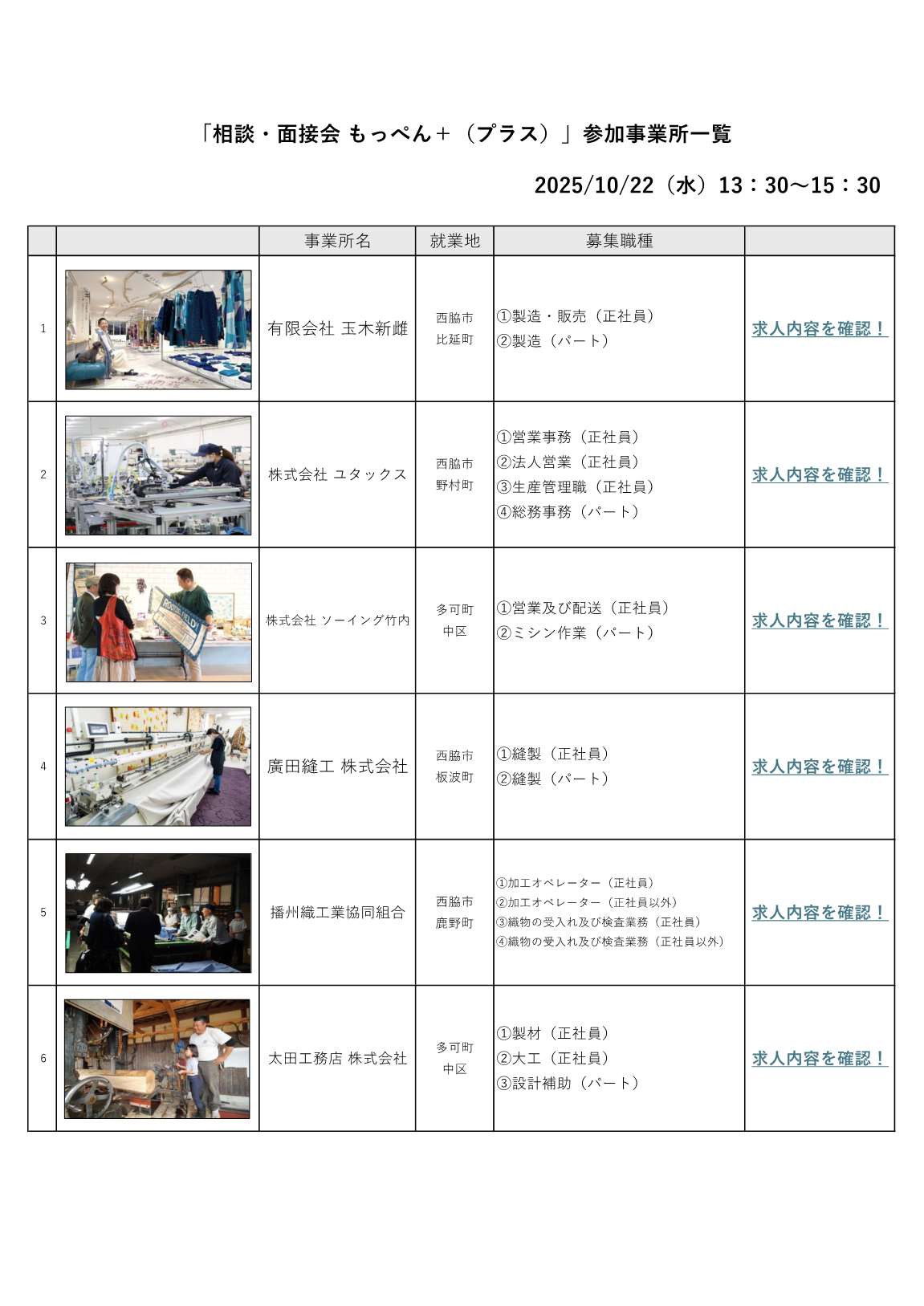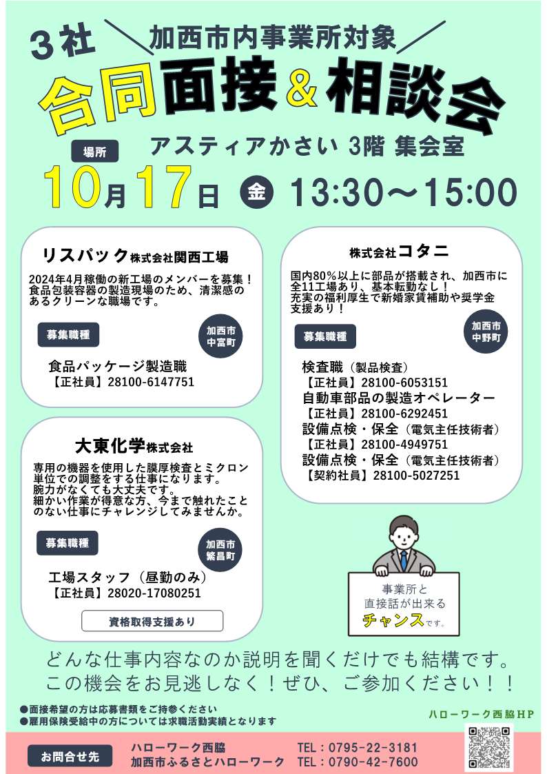 10月17日(金)「3社合同面接&相談会」(加西市内事業所対象)