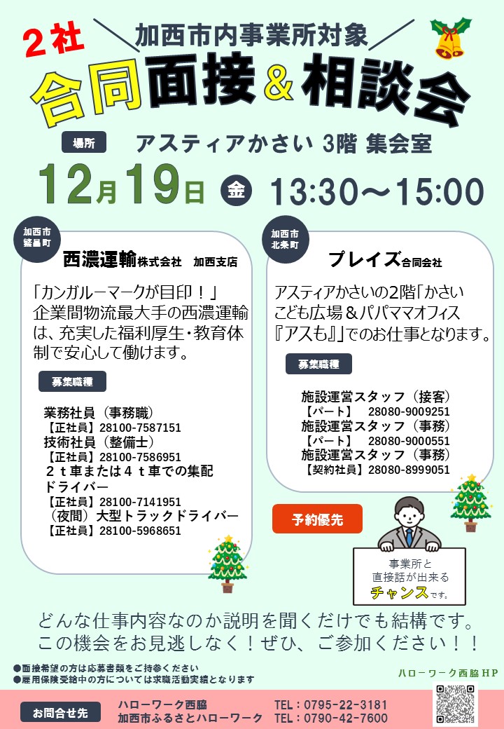 ※画像をクリックするとPDFデータが表示されます。 12月19日(金)「2社合同面接&相談会」