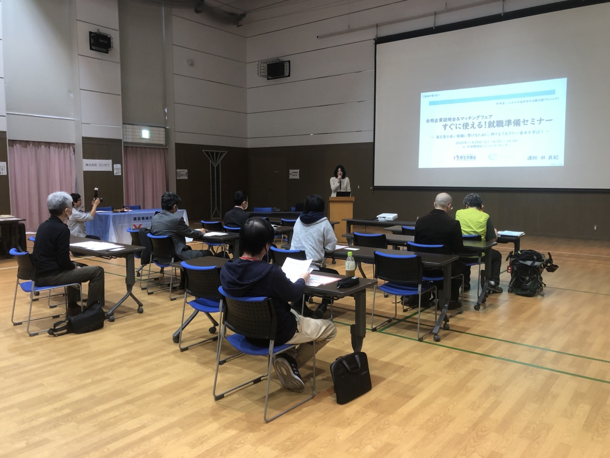 今回の合同企業説明会&マッチングフェアでは、ミドルシニア(中高年)世代を対象に正社員採用を実施する各企業による求人説明、キャリアコンサルタントによる講話を実施しました。