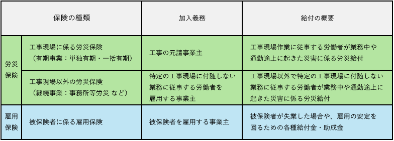 建設業に適用される労働保険の種類