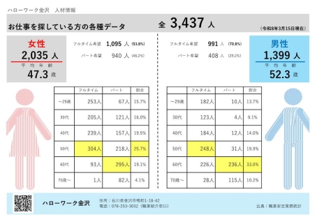 ハローワーク金沢管内の人材情報