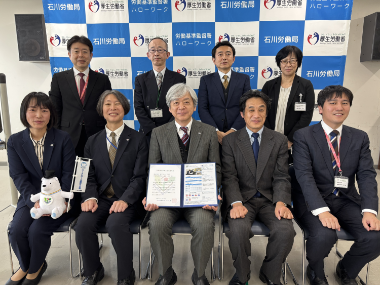 令和8年2月12日(木)にユースエール認定通知書交付式を開催し、石川労働局長 八木 健一(やぎ けんいち)から寺西 昌治(てらにし しょうじ)代表取締役社長に認定通知書を交付しました。