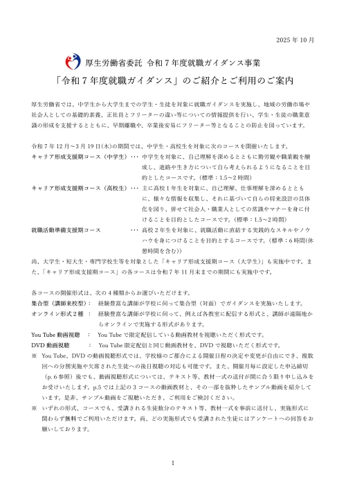- 【厚生労働省委託】「令和 7 年度就職ガイダンス」のご紹介とご利用のご案内