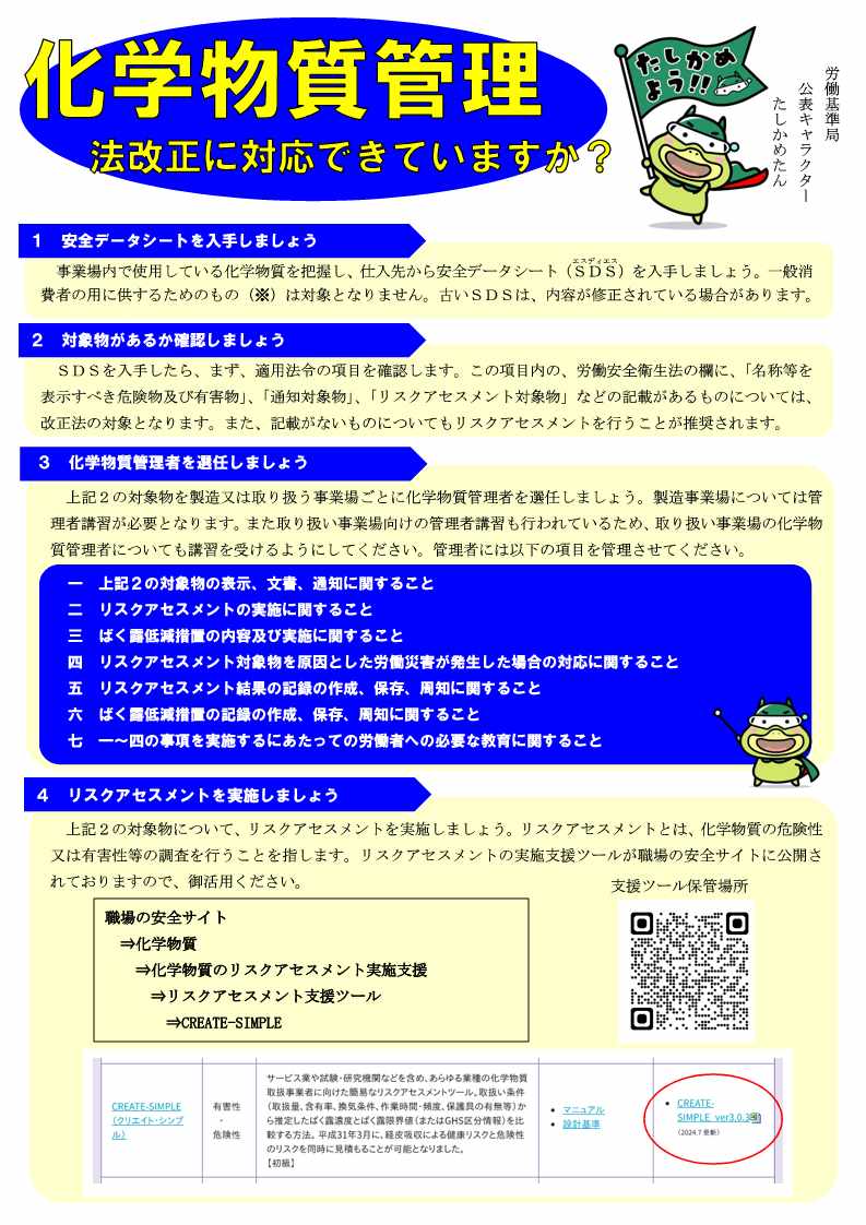 内 容:SDSの見方やクリエイトシンプルを用いたリスクアセスメント手法について