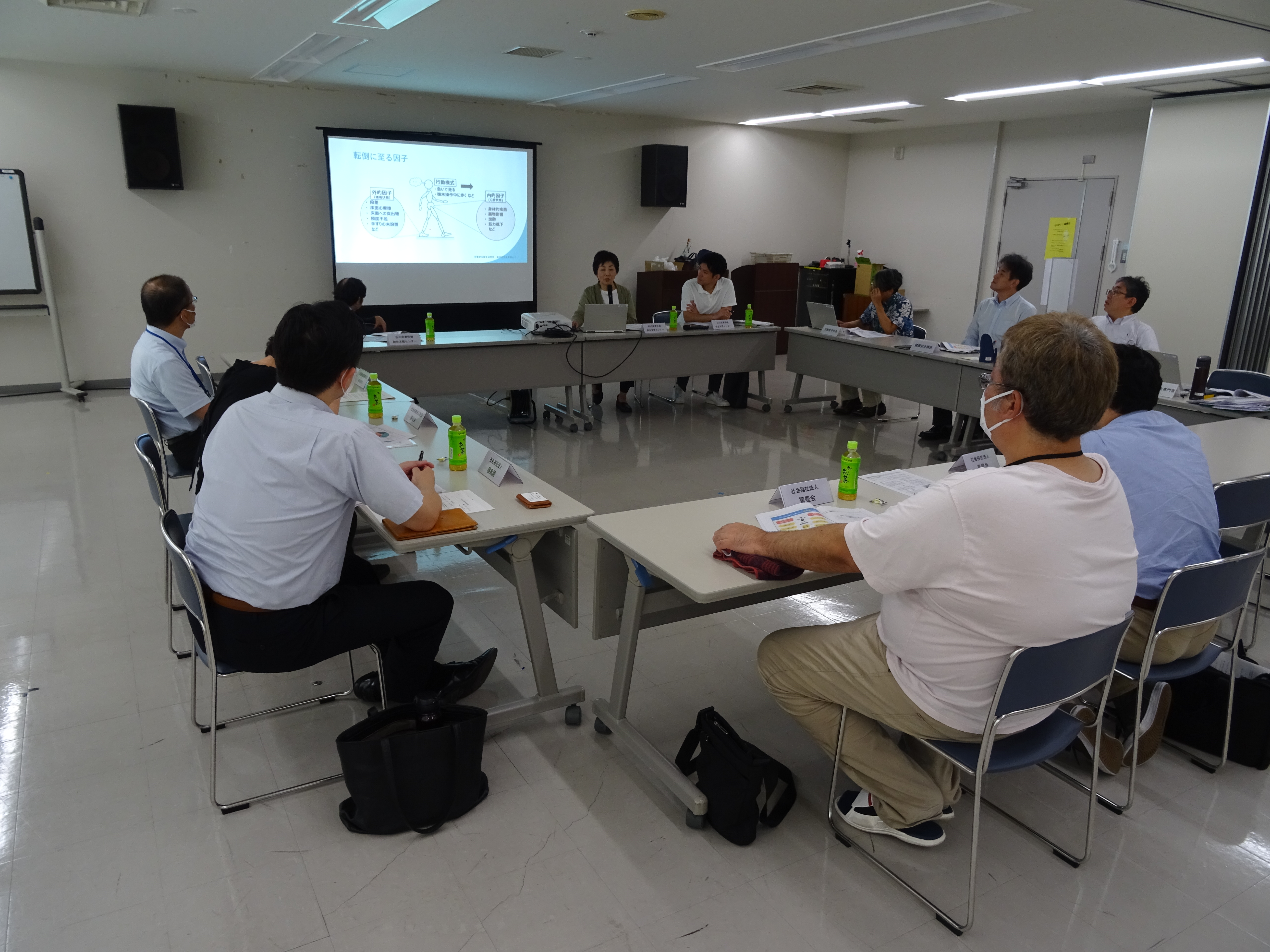 石川産業保健総合支援センター亀田産業保健専門職から、職場における転倒防止対策と体力測定の重要性について講義を受ける参加者の様子
