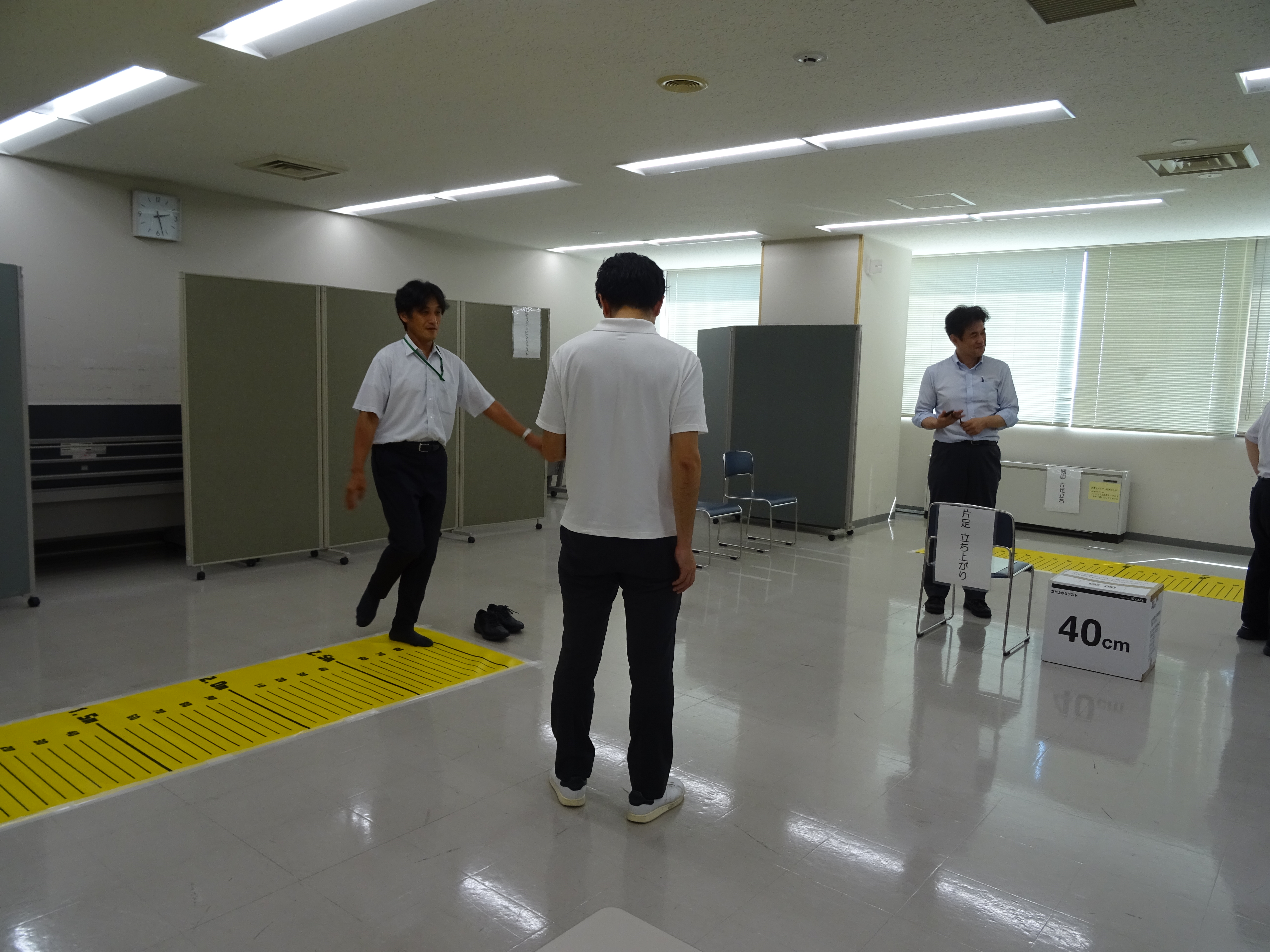 当日は、石川産業保健総合支援センターのご協力のもと、エイジフレンドリーガイドラインに基づく体力チェックの実践を行い、参加者の皆さまに安全で健康的に働き続けるためのポイントを体験的に学んでいただきました。
