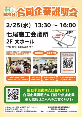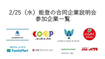 | 2/25(水) | 能登の合同企業説明会 七尾商工会議所2階大ホール |