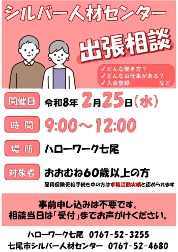 | 2/25(水) | シルバー人材センター出張相談 | 9:00~12:00 |