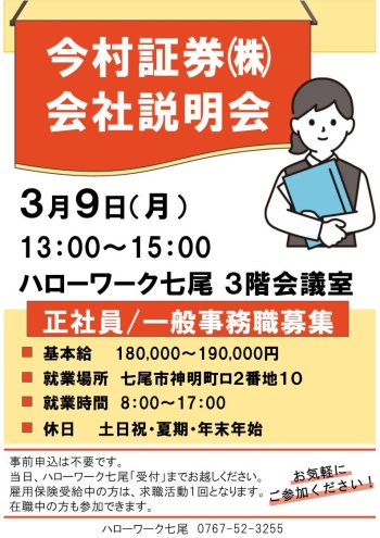| 3/9(月) | 今村証券(株) | 13:00~15:00 |