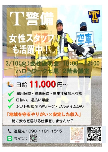 | 3/5(月) | T警備 | 13:00~15:00 |