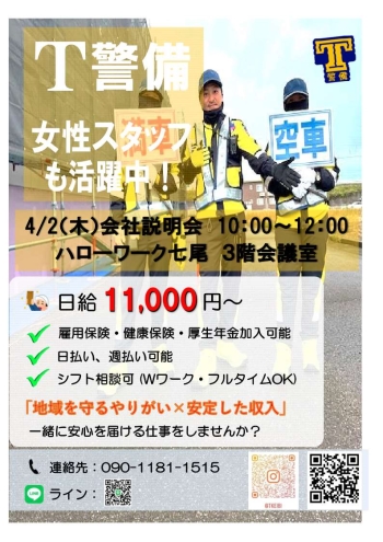 | 4/2(木) | T警備 | 13:00~15:00 |