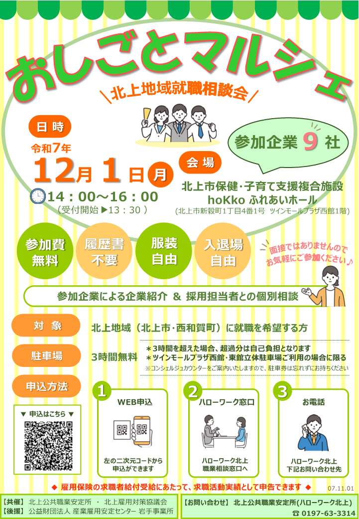 - 【おしごとマルシェ(北上地域就職相談会)参加者募集中!!】