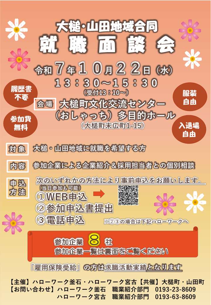 - 【2025.10.22開催】「大槌・山田地域合同就職面談会」のご案内
