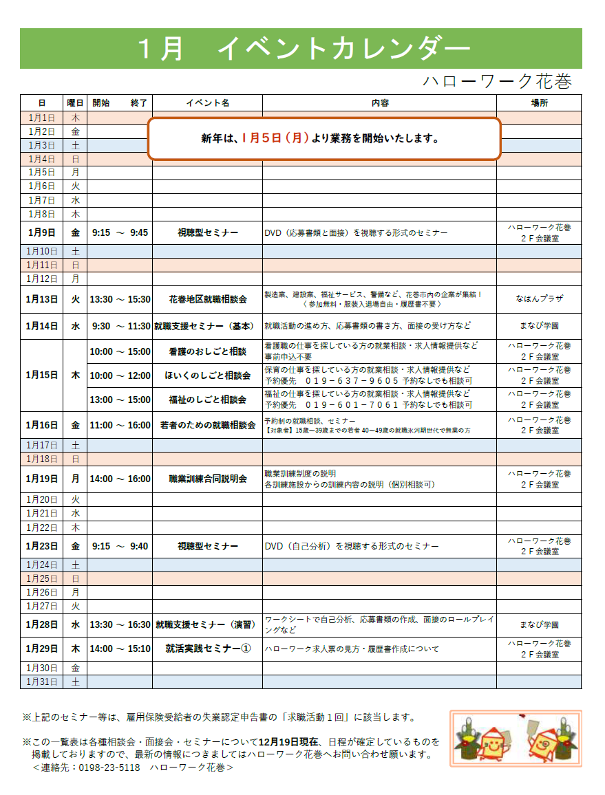 令和8年1月開催予定イベント情報等[PDF:525KB]