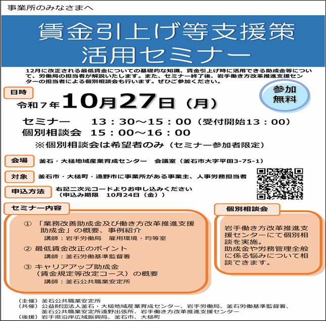 - 【賃金引上げ等支援策活用セミナー 参加事業所募集中!!】