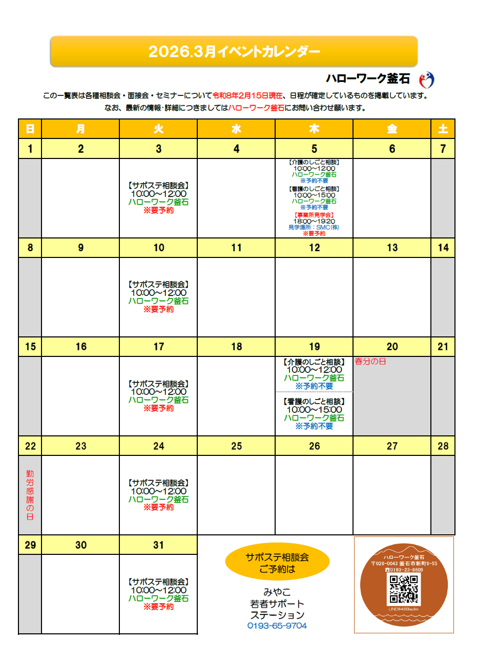 ※ご予約:連絡先 みやこ若者サポートステーション(0193-65-9704)