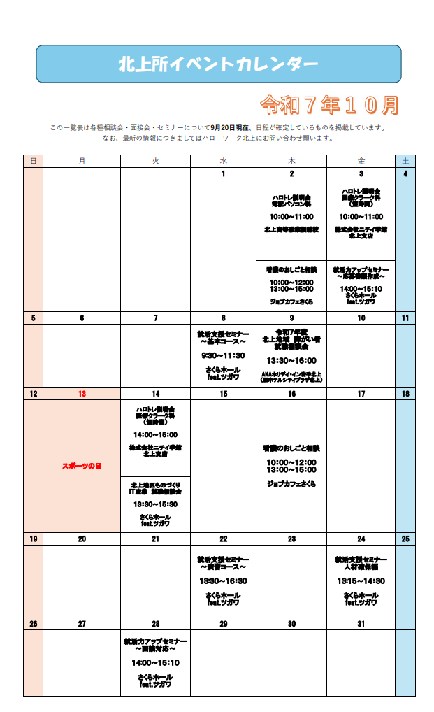 - 2025年09月12日 【2025.10.9開催】令和7年度北上地域障がい者就職相談会のご案内