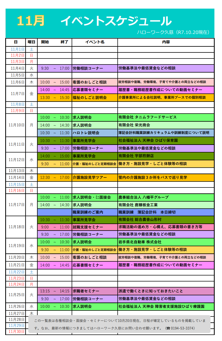 令和7年11月の求人説明会・ミニ面接会・事業所見学会【PDF:414KB】