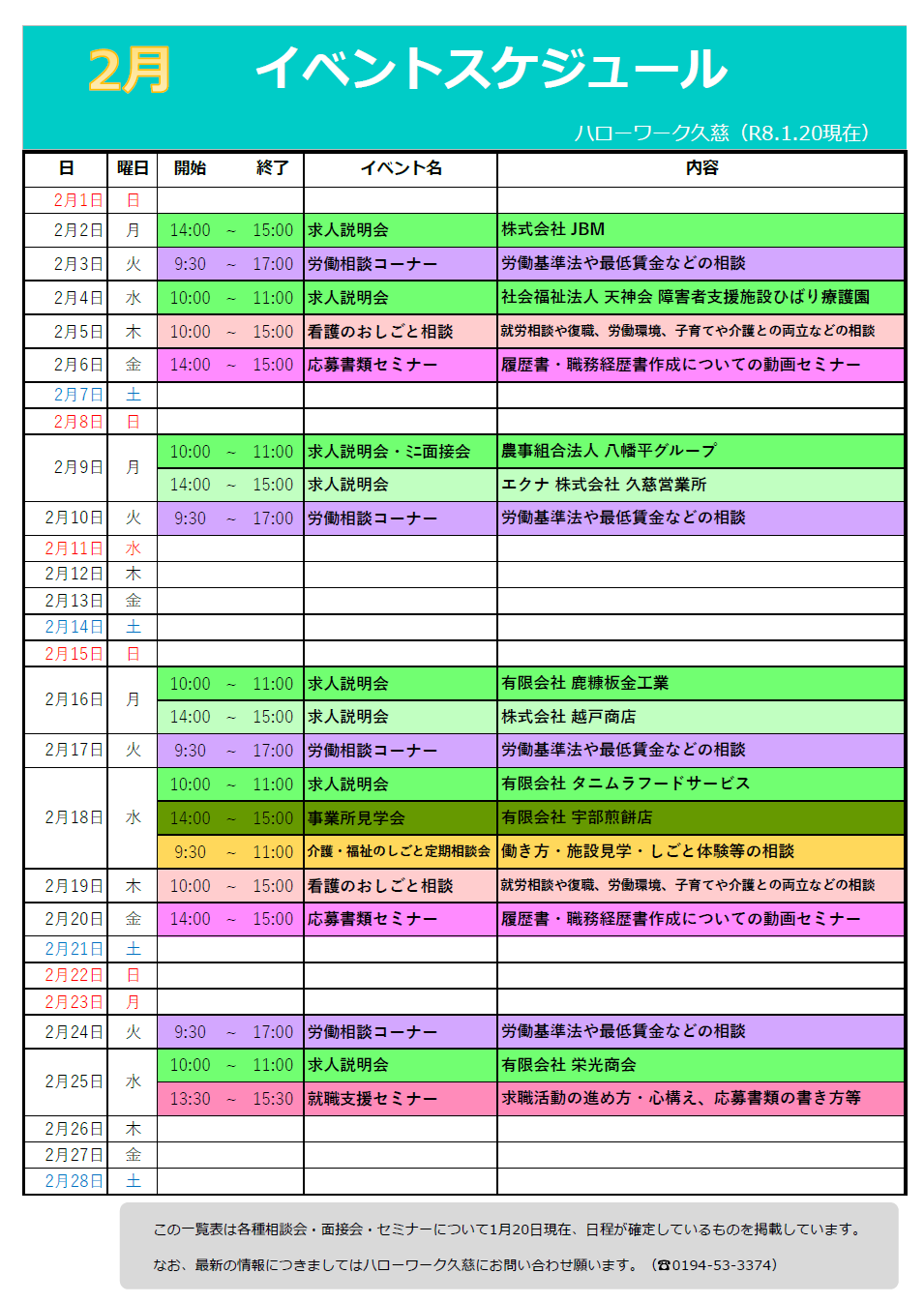 令和8年2月の求人説明会・ミニ面接会・事業所見学会【PDF:421KB】