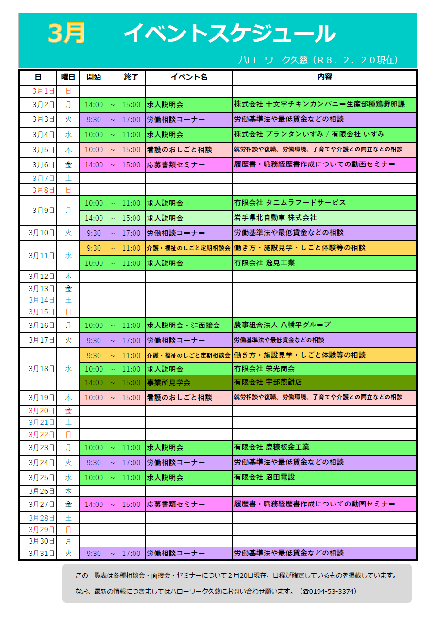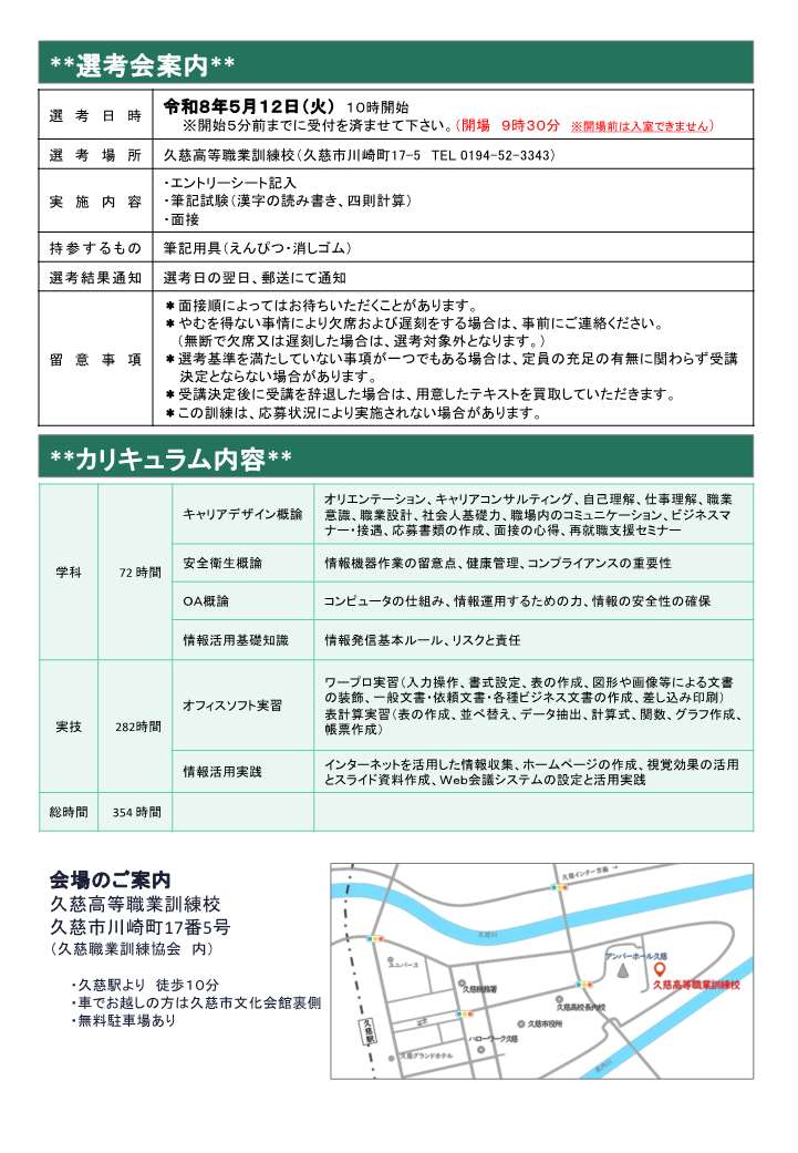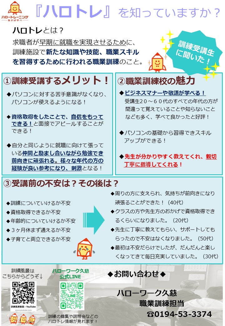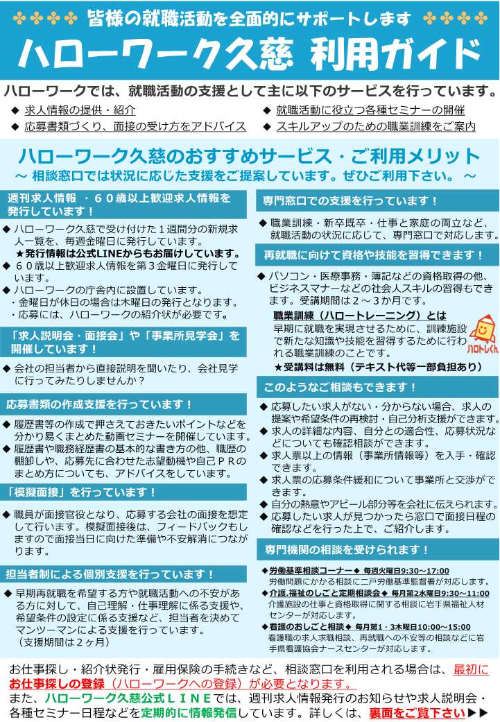 - ハローワーク久慈からのお知らせ