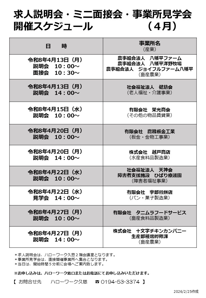■令和8年4月の求人説明会・ミニ面接会・事業所見学会【PDF:390KB】←NEW!!