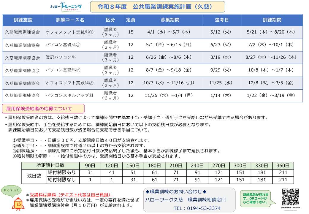 ■令和8年度 公共職業訓練実施計画表(久慈)【PDF:404KB】