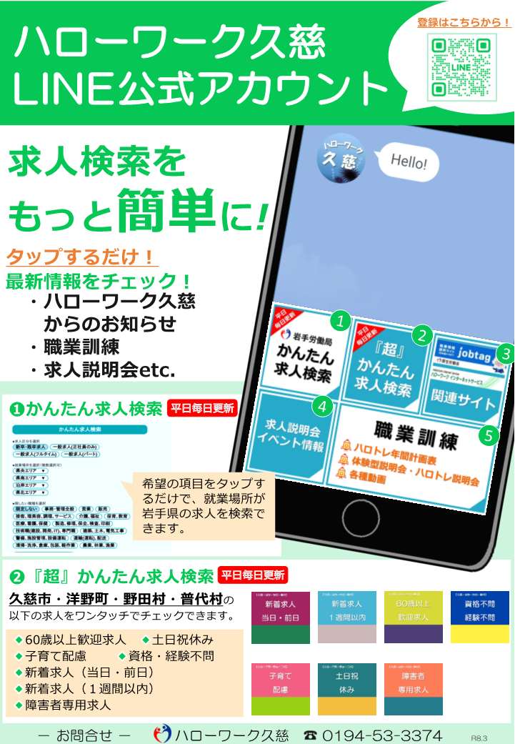 ハローワーク久慈公式LINEのご案内