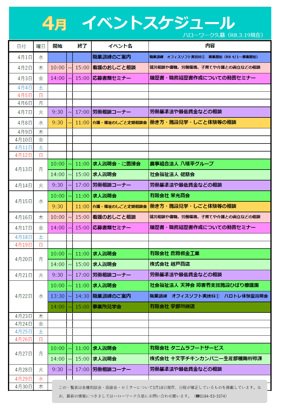 ハローワーク久慈からのお知らせ