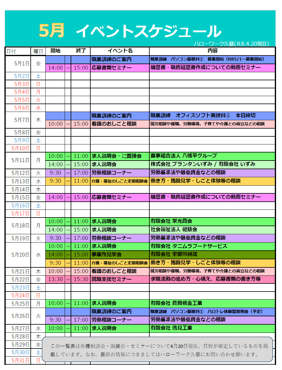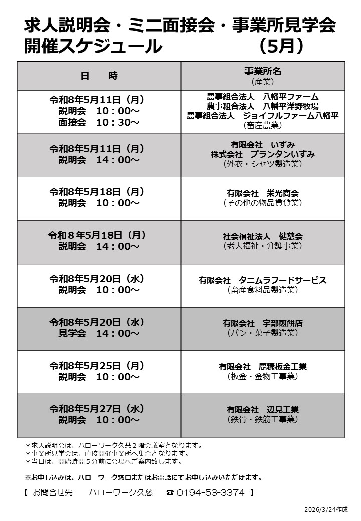 ■令和8年5月の求人説明会・ミニ面接会・事業所見学会【PDF:383KB】←NEW!!