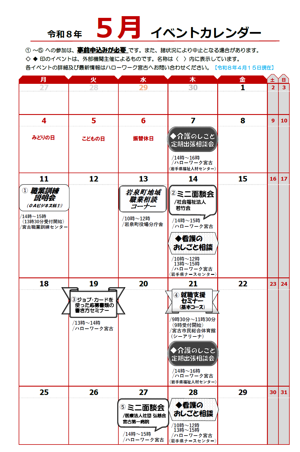 令和8年5月開催予定イベント情報等[PDF:308KB]