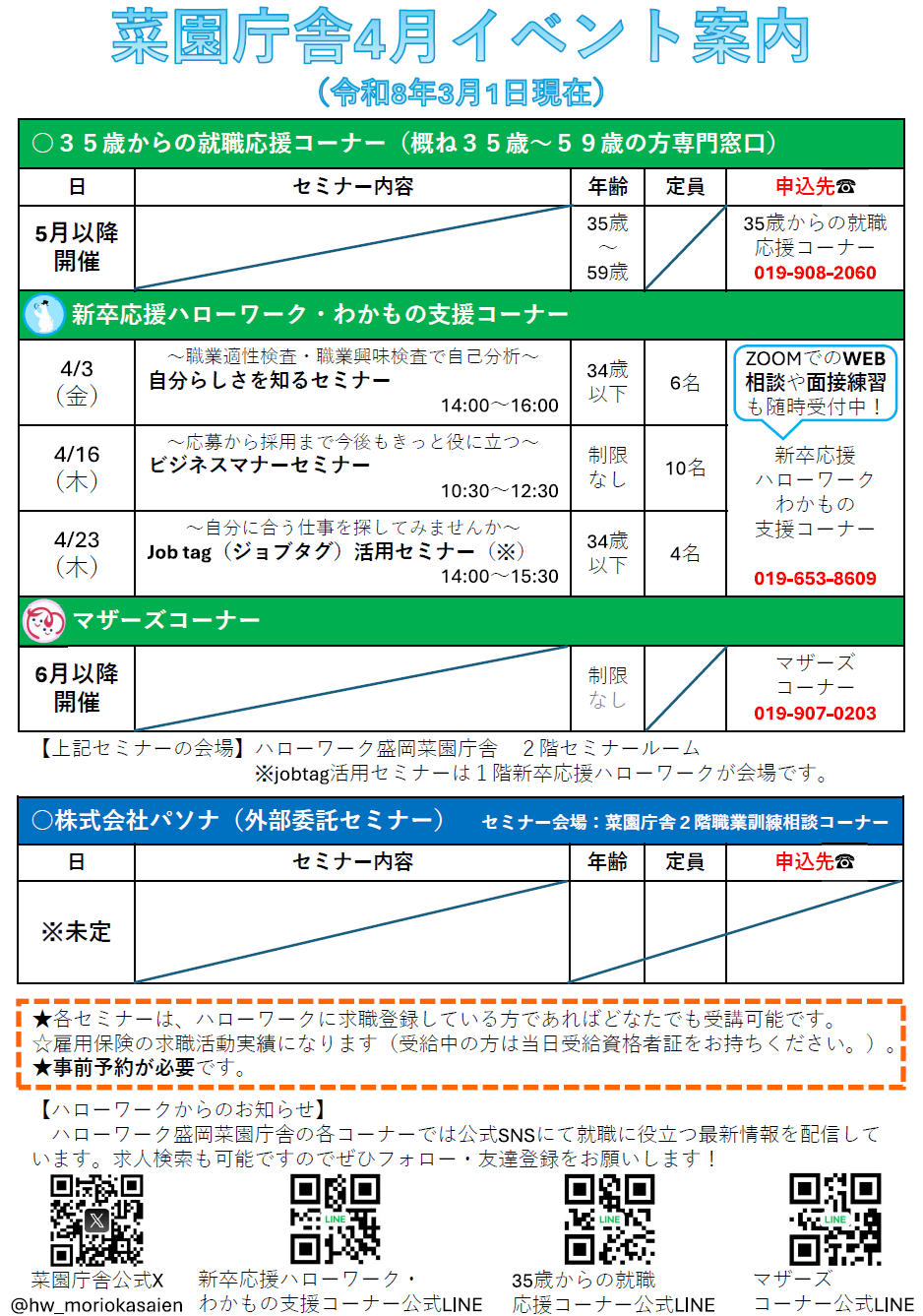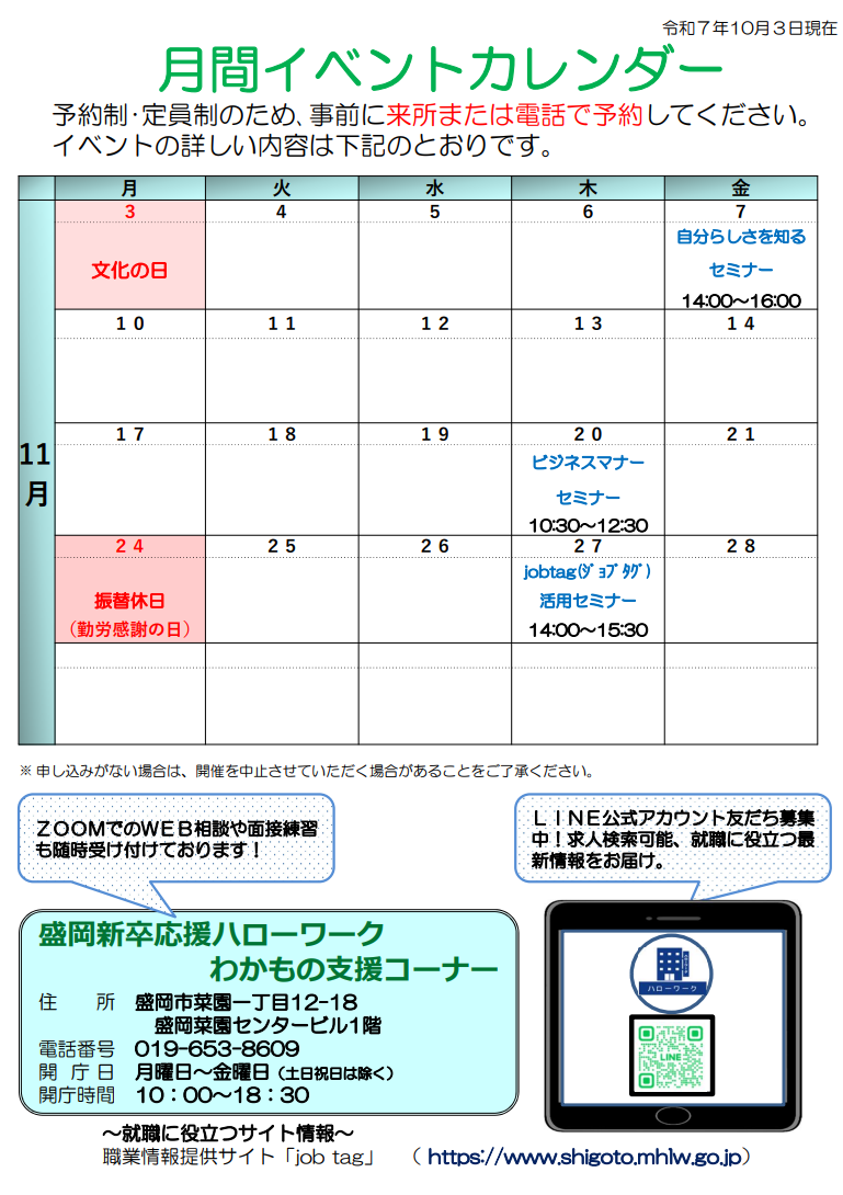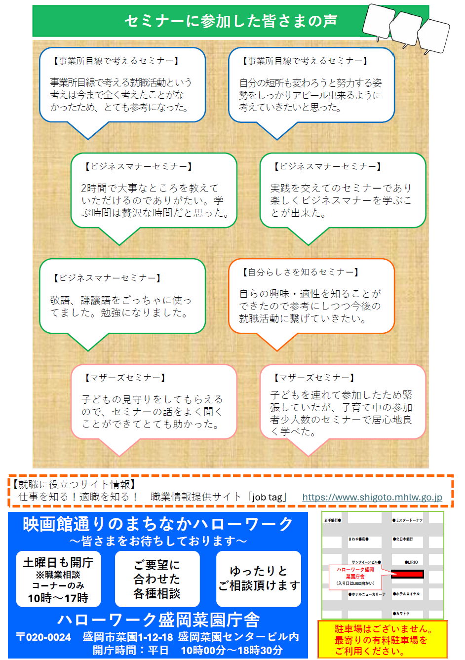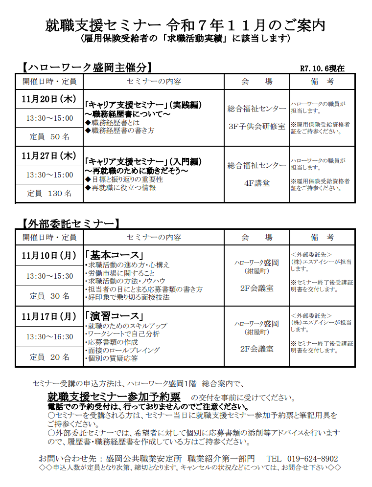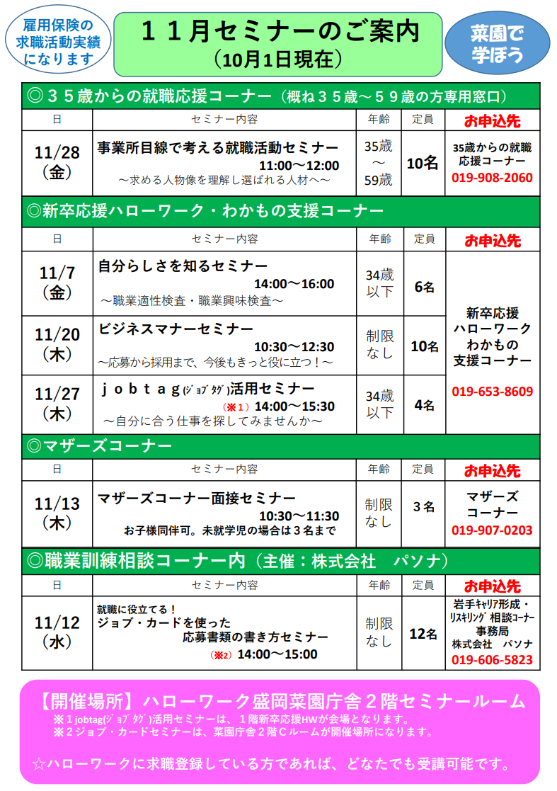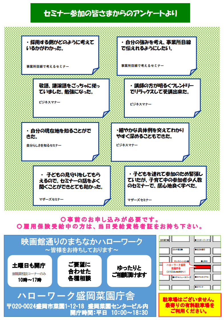 ハローワーク盛岡からのお知らせ
