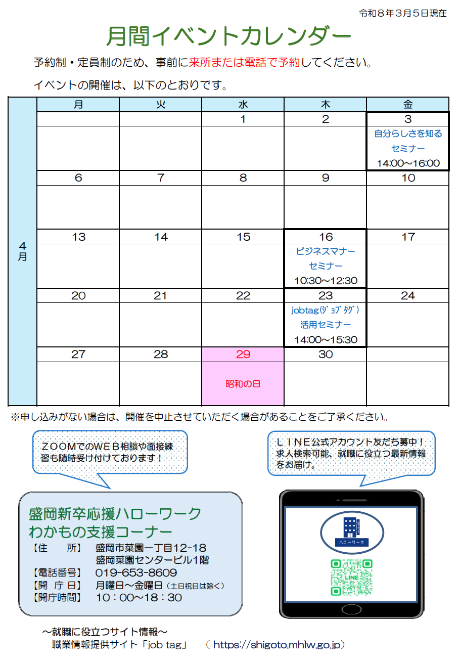 - ハローワーク盛岡からのお知らせ