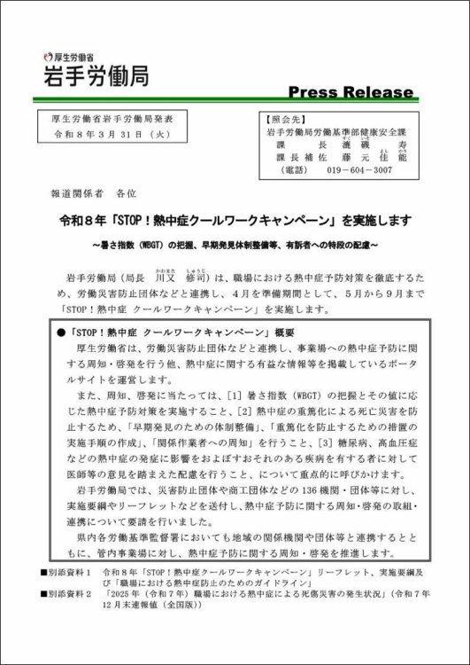 - 令和8年「STOP!熱中症 クールワークキャンペーン」の実施について