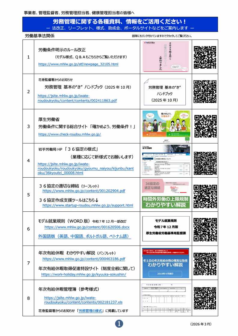 ・リーフレット「労務管理に関する各種資料、情報をご活用ください!」(2026年3月)を更新しました (労務管理)