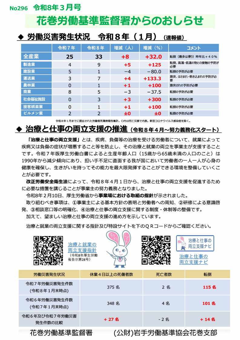 花巻労働基準監督署からのおしらせ(安全衛生課、令和8年1月)[PDF:477KB]