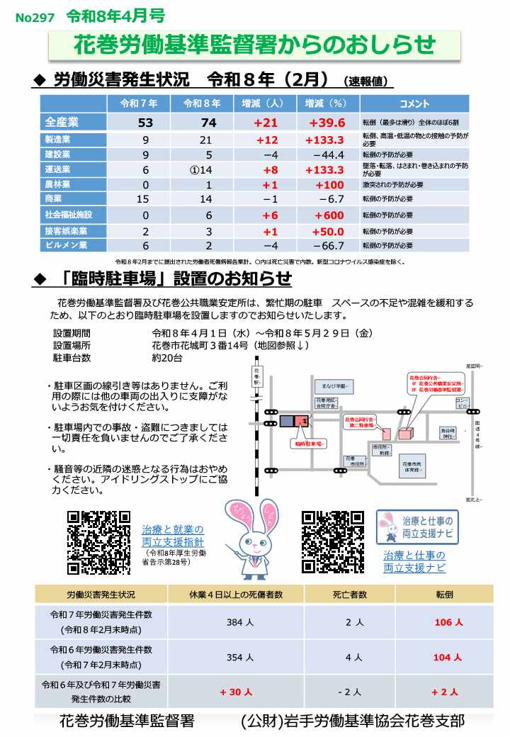 花巻労働基準監督署からのおしらせ(安全衛生課、令和8年2月)[PDF:35KB]