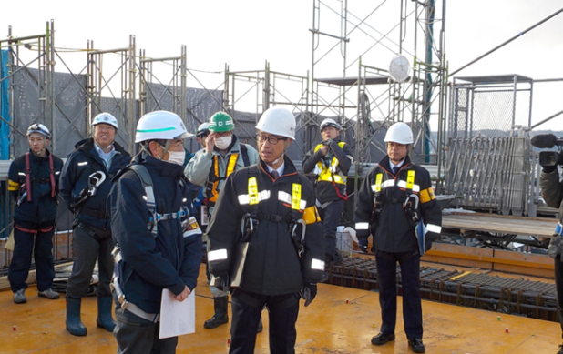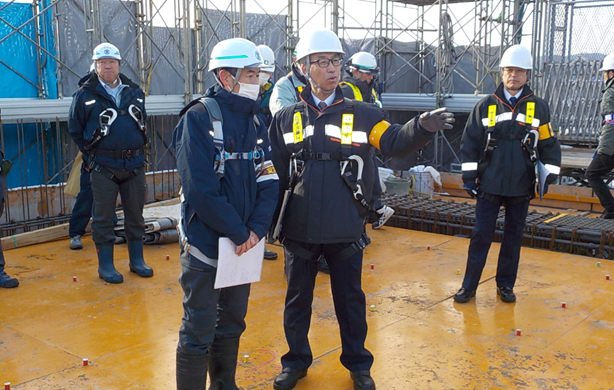 白石局長は、「令和7年度いわて年末年始無災害運動」(令和7年12月1日~令和8年1月31日)の取組みの一環として、12月5日(金)、盛岡市盛岡駅西通一丁目8番地の「盛岡駅西通23街区JVプロジェクト(ザ・ミッドシティ盛岡駅西通)新築工事」の現場において安全パトロールを実施しました。