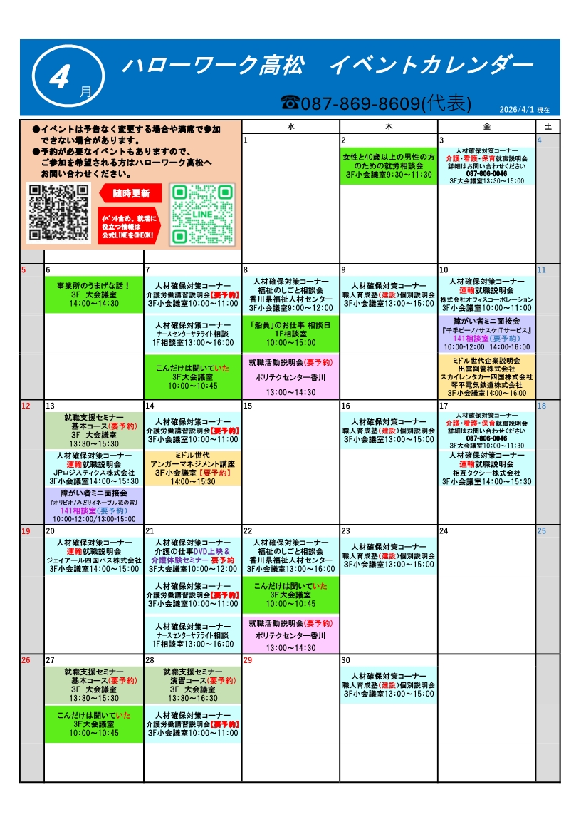 ハローワーク高松【イベント情報】