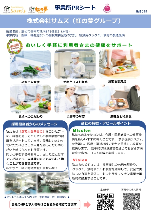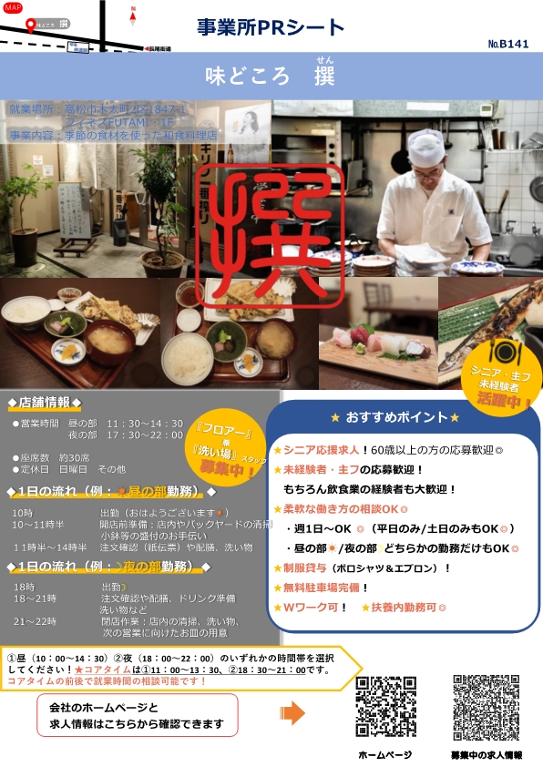 事業所の採用担当者やハローワーク高松の職員が心を込めて1枚のシートにまとめたものです。