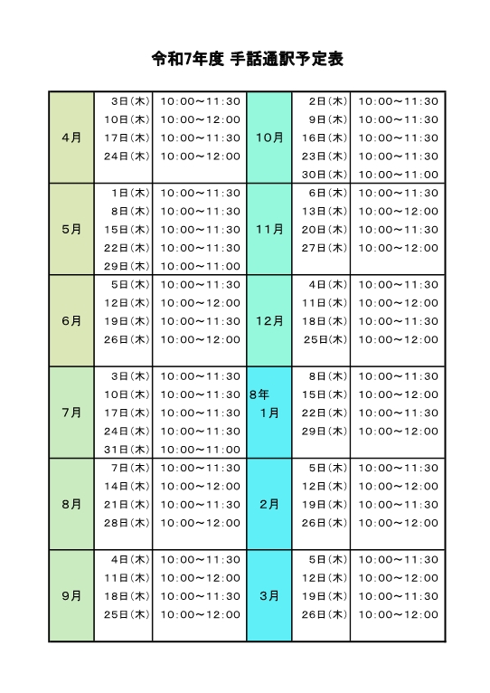 【ハローワーク高松】令和7年度 手話通訳予定表