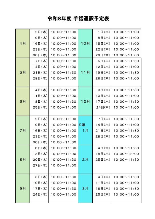 【ハローワーク高松】令和7~8年度 手話通訳予定表