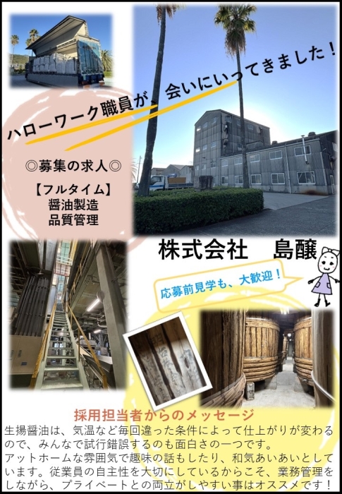 事業内容:生揚醤油の製造、開発、品質管理