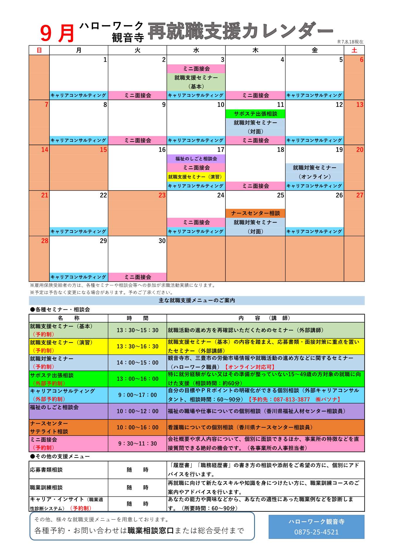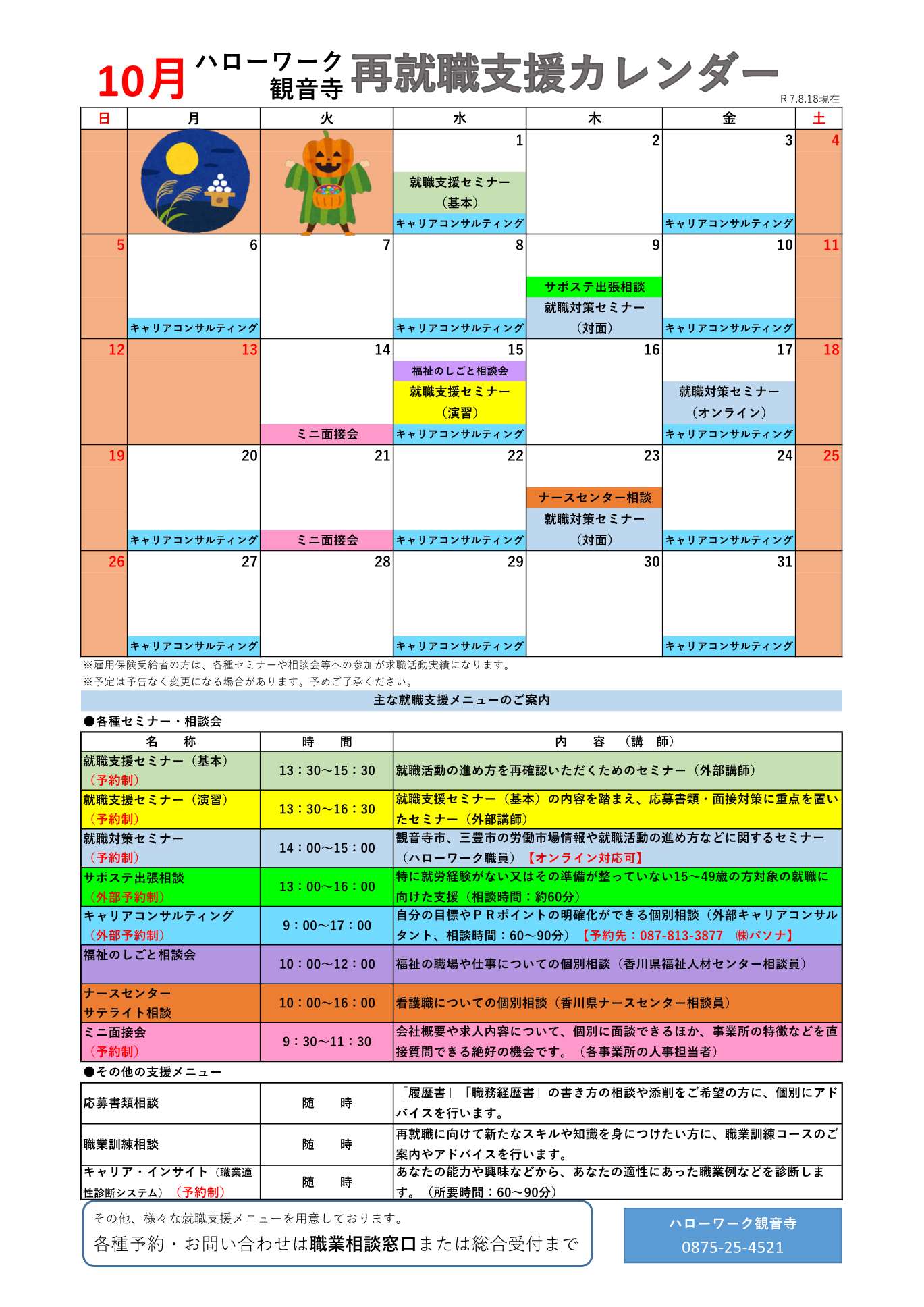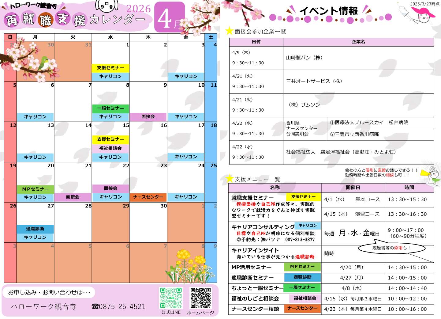 ハローワーク観音寺では説明会・面接会・セミナー等の情報をカレンダーにして掲載しています