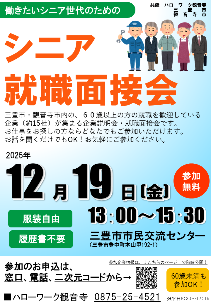 三豊・観音寺地域「シニア就職面接会」を開催します!
