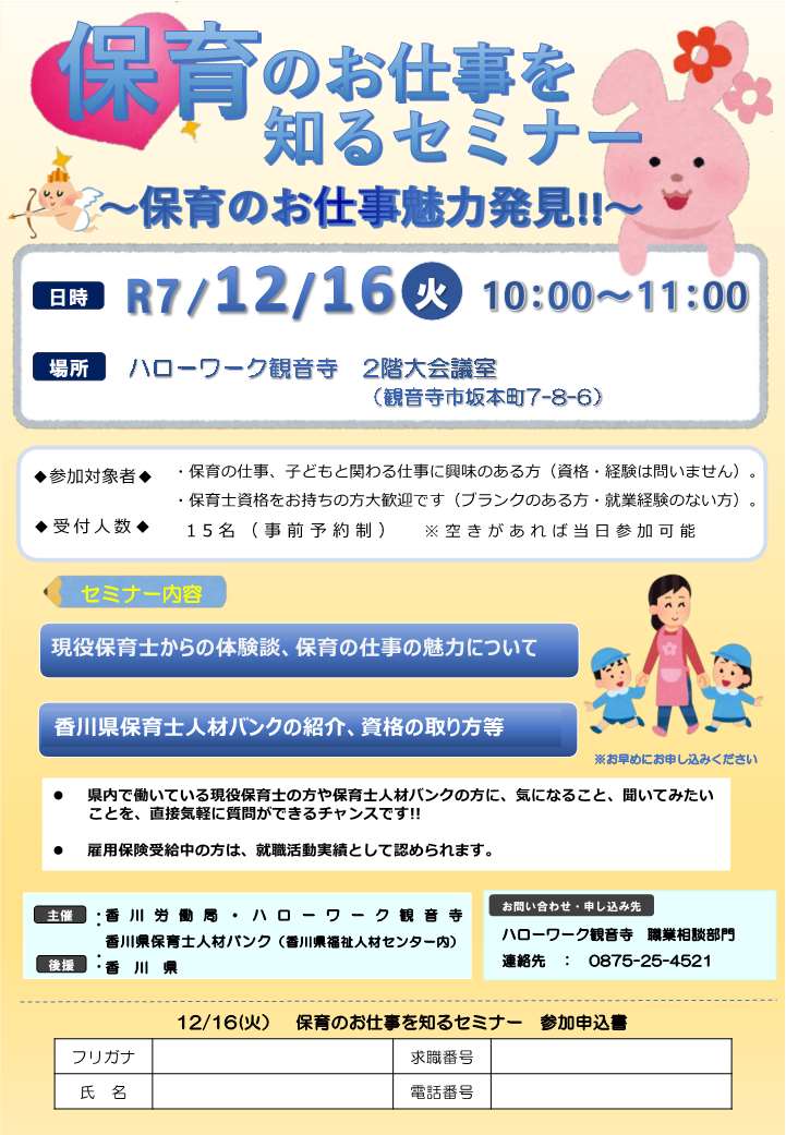 お申込はハローワーク観音寺まで。TEL:0875-25-4521