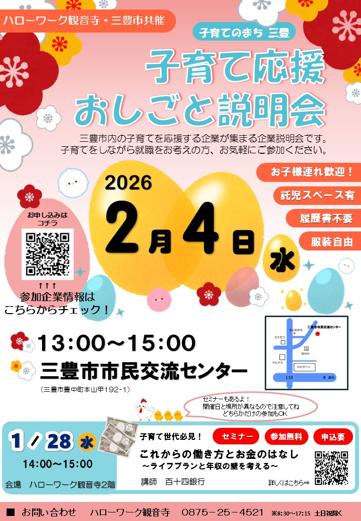 「子育てのまち三豊 子育て応援おしごと説明会」を開催します!
