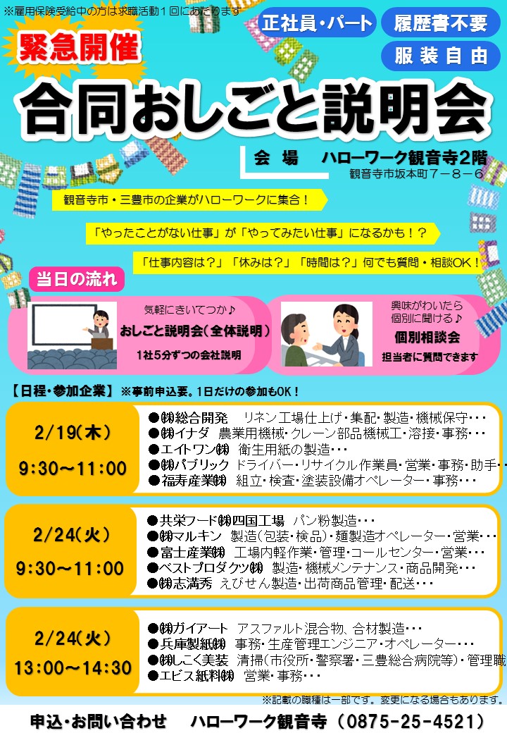 参加のお申込は、ハローワーク観音寺まで📞0875-25-4521