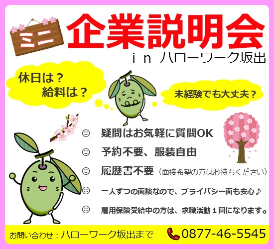 【坂出 3月2回目】ミニ企業説明会を開催します