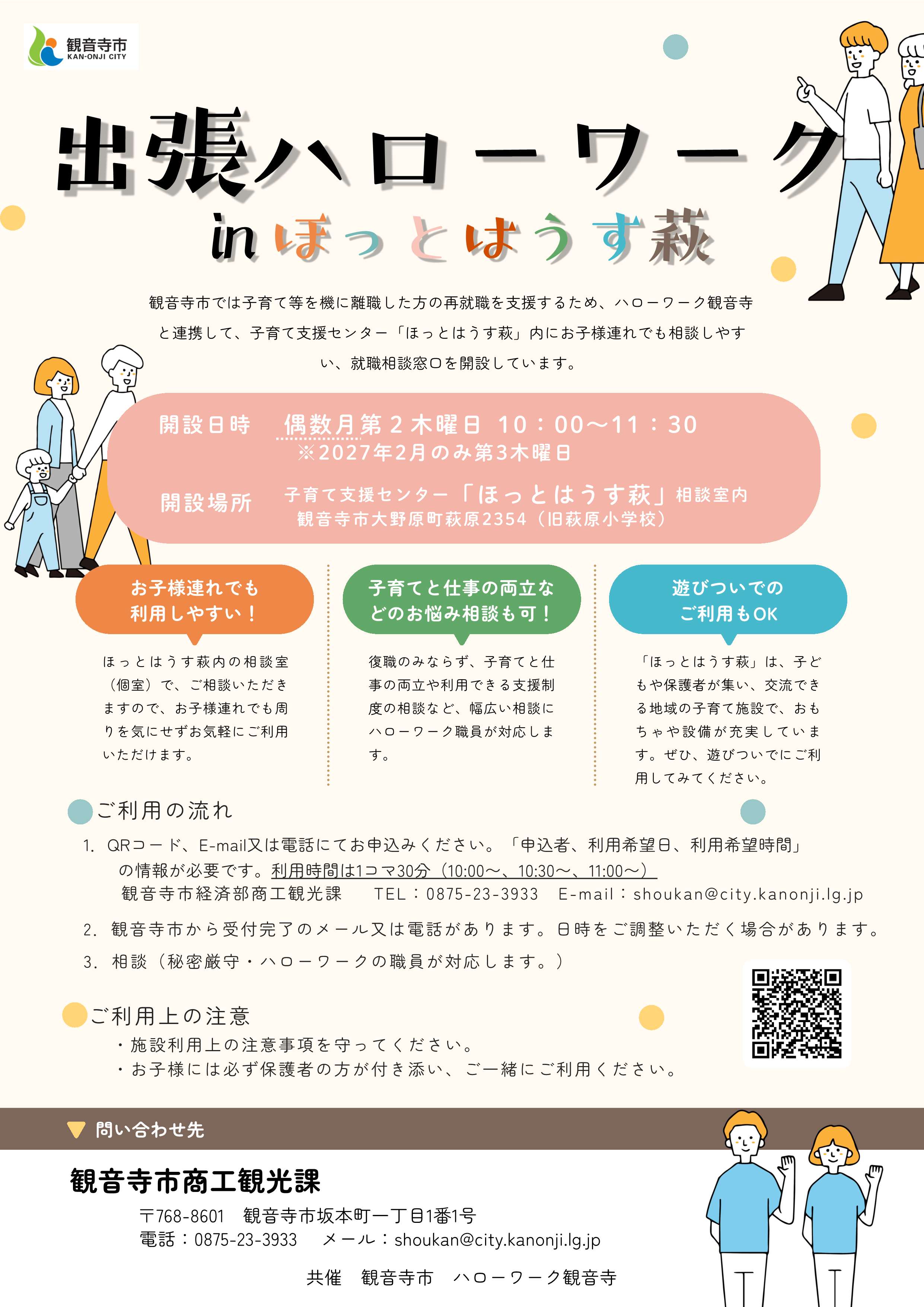 子育て支援センター「ほっとはうす萩」で、お子様連れでしごとの相談ができます